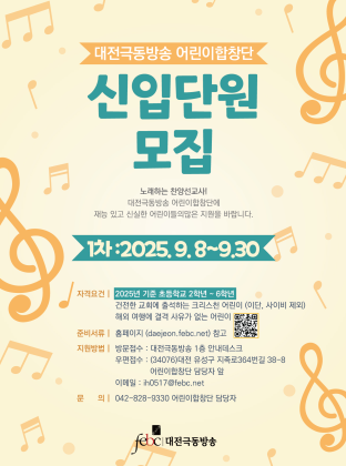 2025 전북극동방송 어린이합창단 신입단원 모집