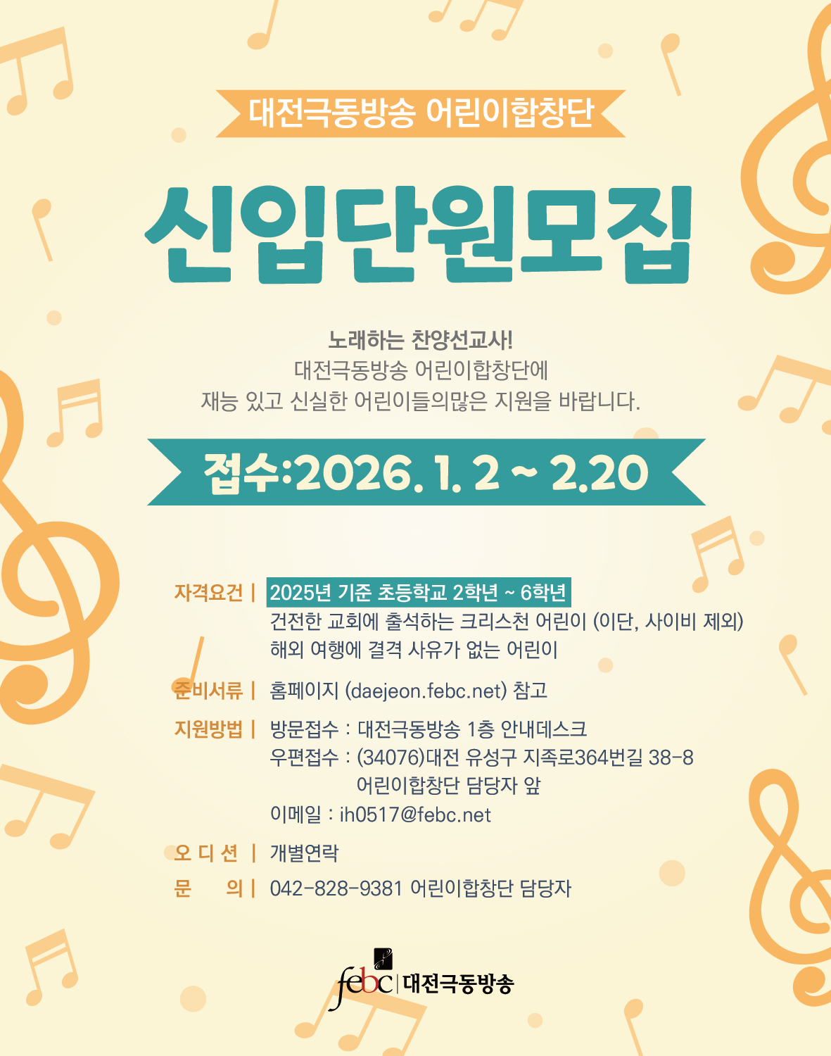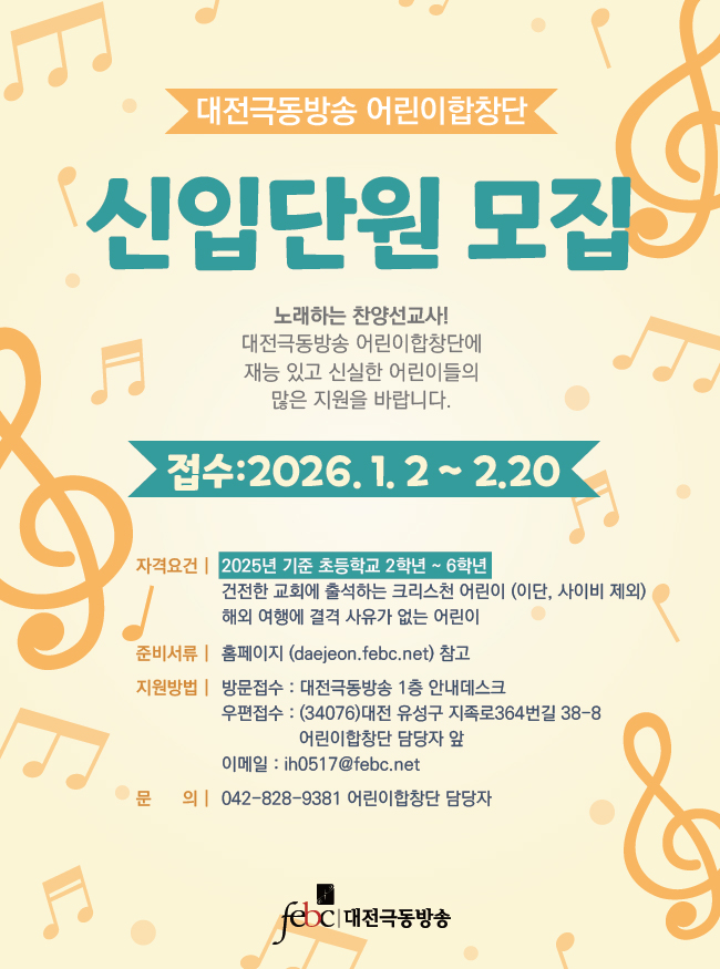 대전극동방송 어린이합창단 신입단원 모집