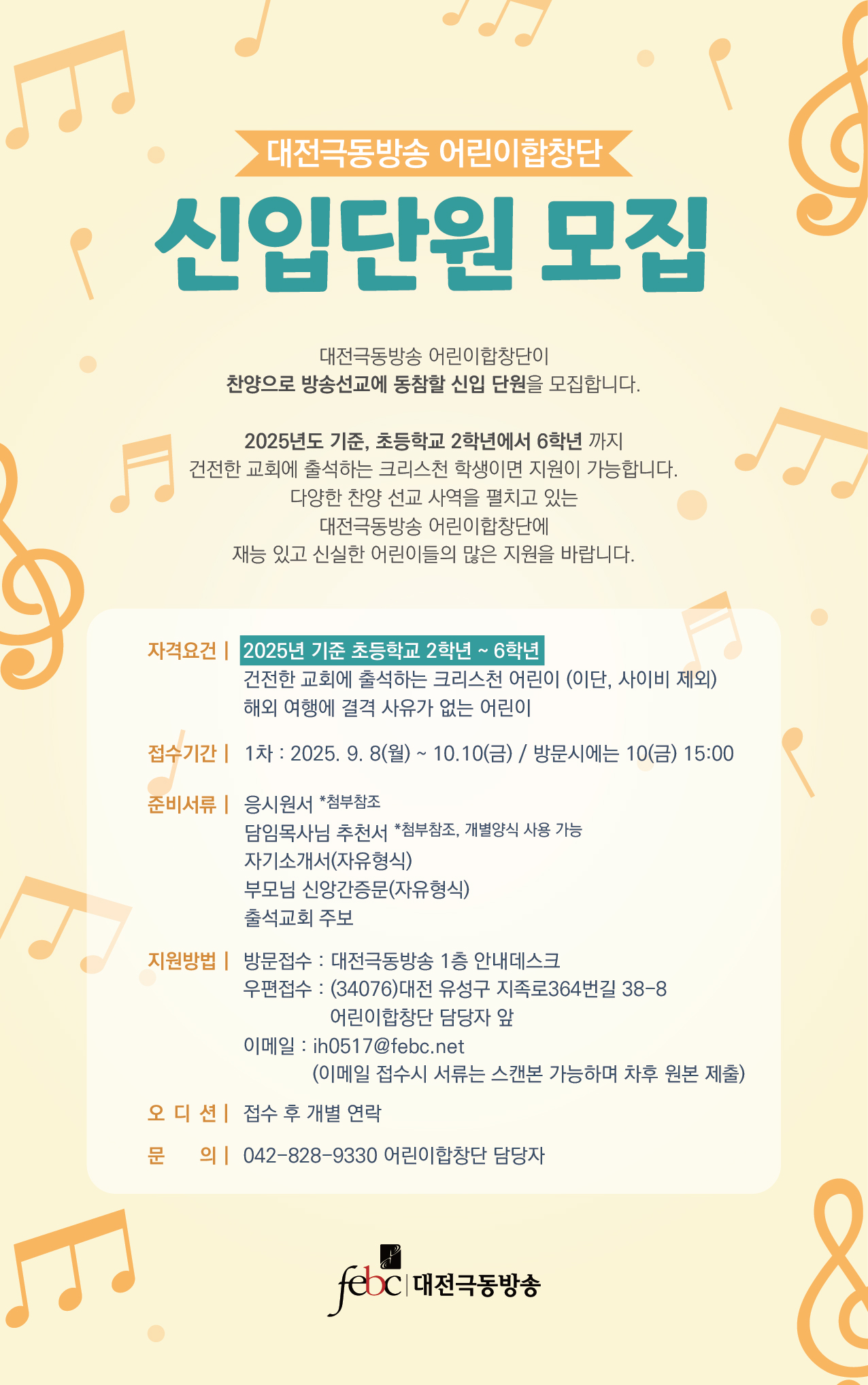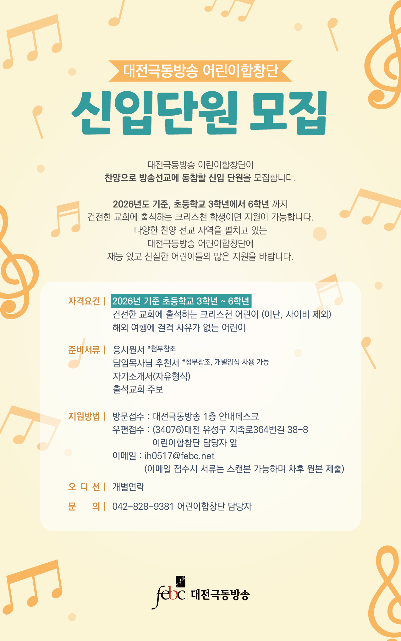 대전극동방송 어린이합창단 신입단원 모집