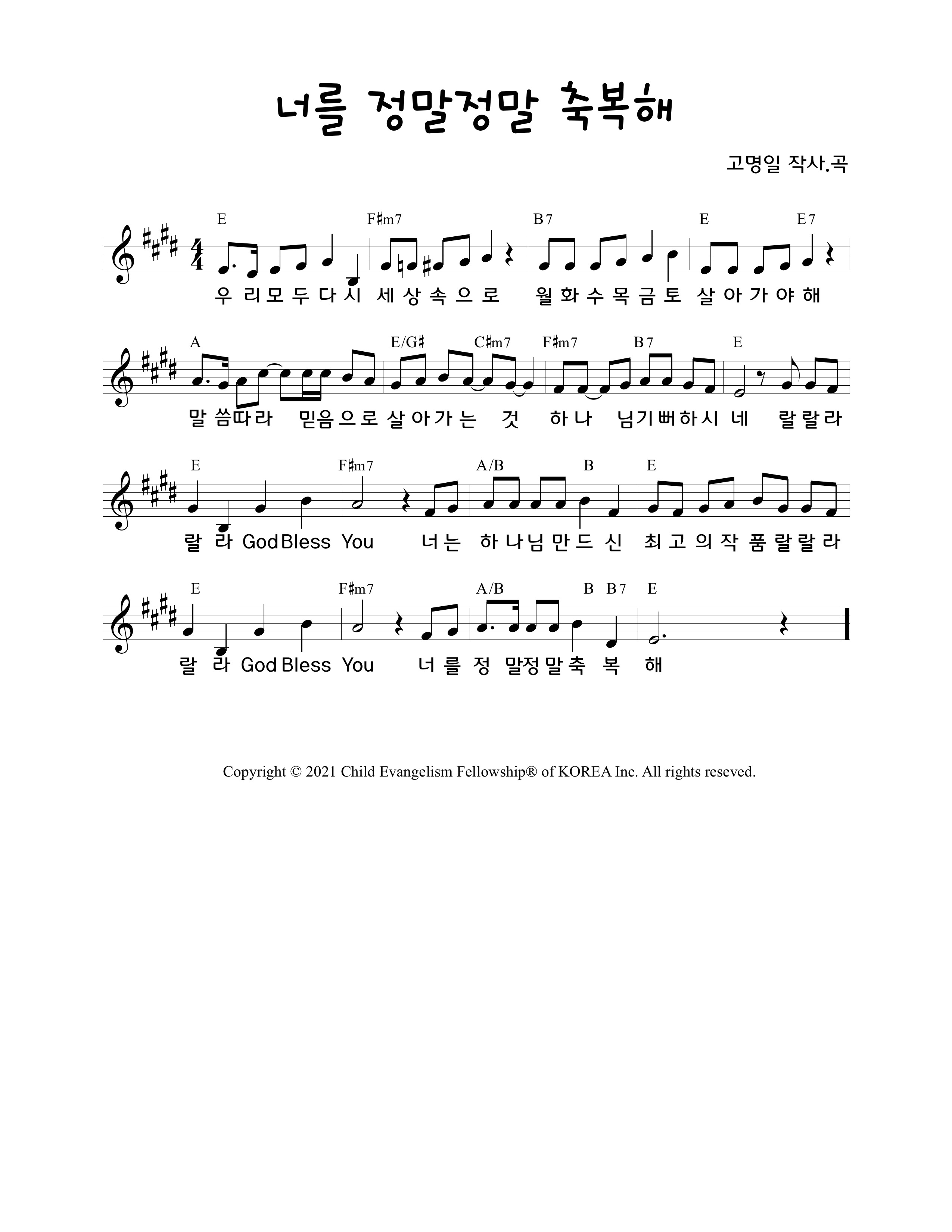 251227(토) '너를 정말정말 축복해' 악보