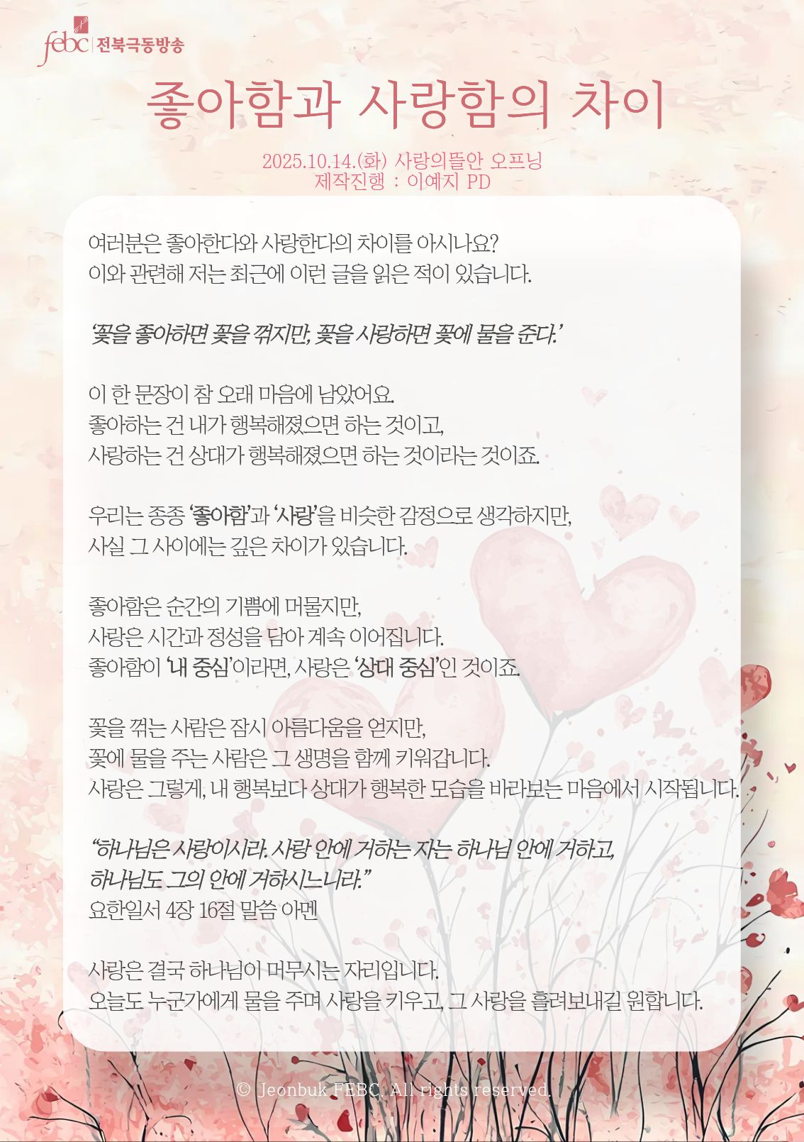 [전북] 25.10.15.(수) 사랑의뜰안 오프닝 "좋아함과 사랑함의 차이"