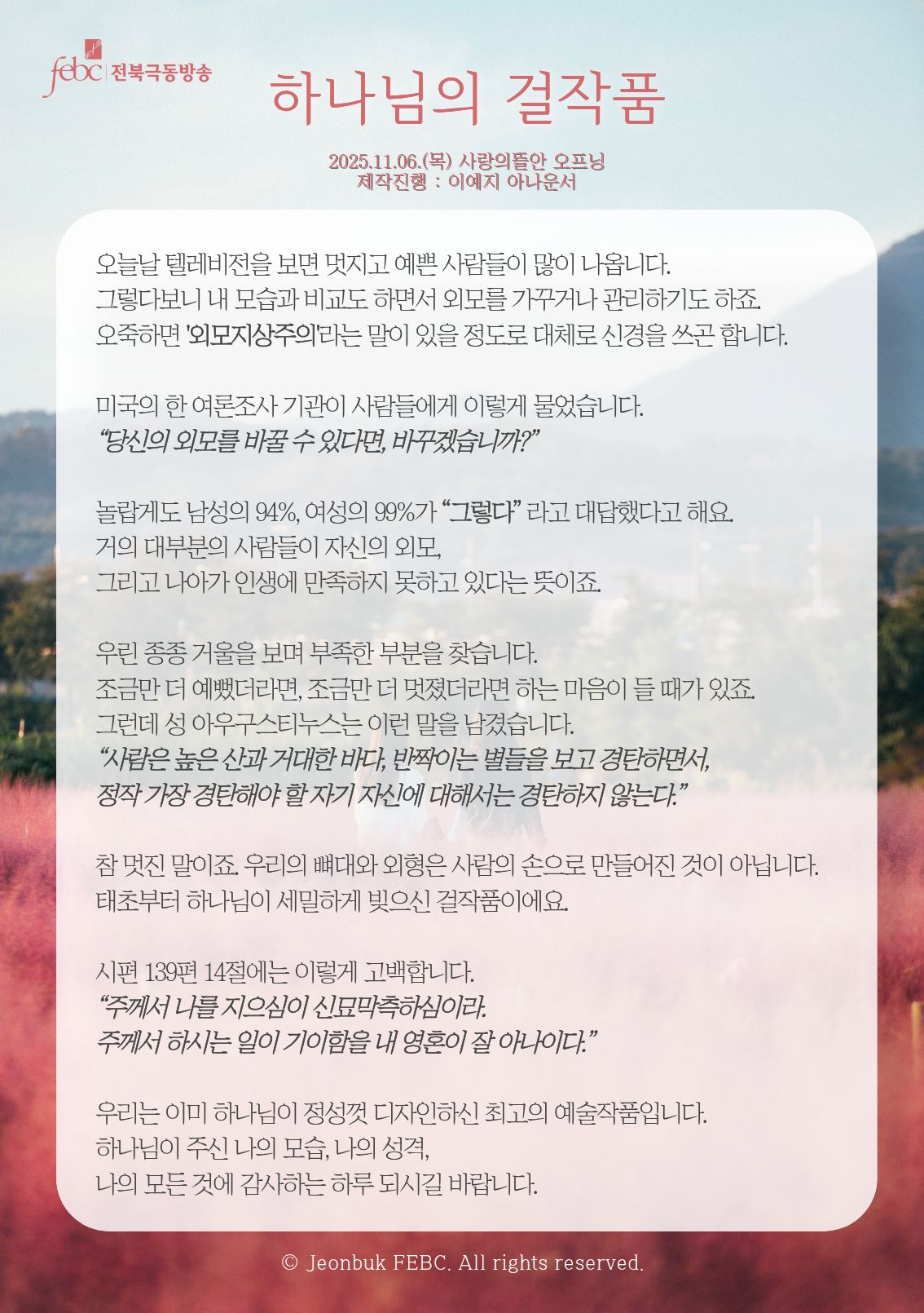 [전북] 25.11.06.(목) 사랑의뜰안 오프닝 "하나님의 걸작품"