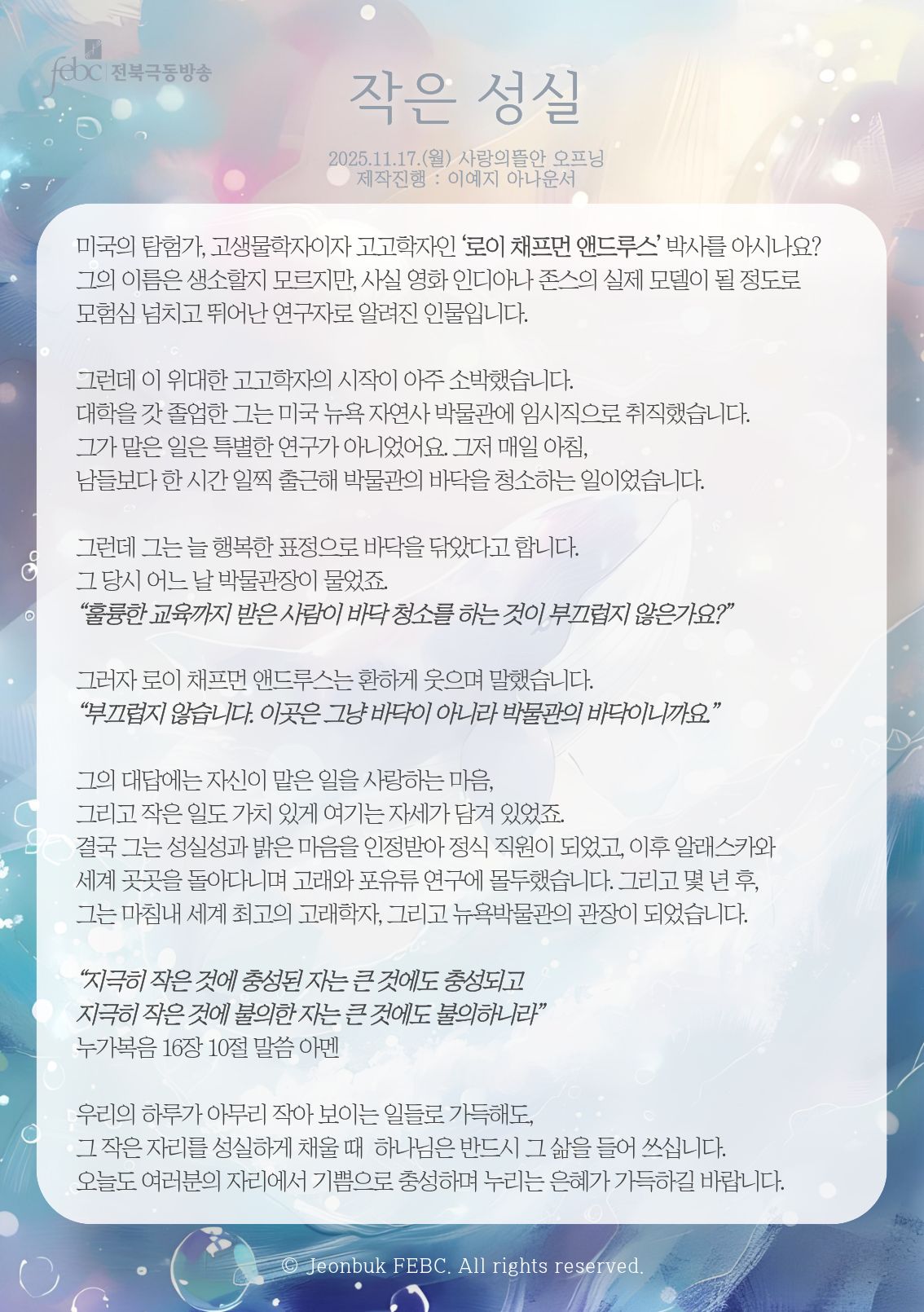 [전북] 25.11.17.(월) 사랑의뜰안 오프닝 "작은 성실"