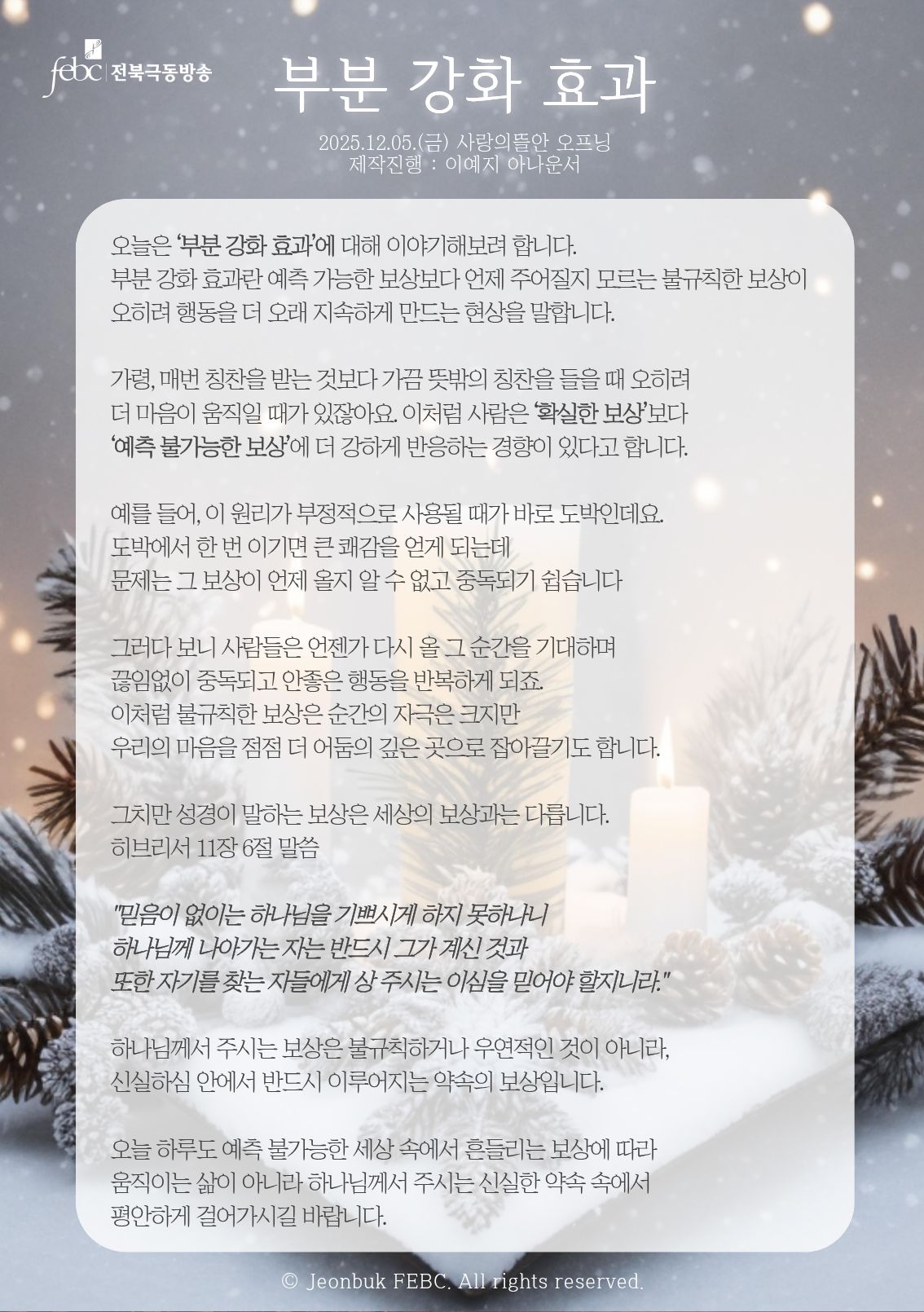 [전북] 25.12.05.(금) 사랑의뜰안 오프닝 "부분 강화 효과"