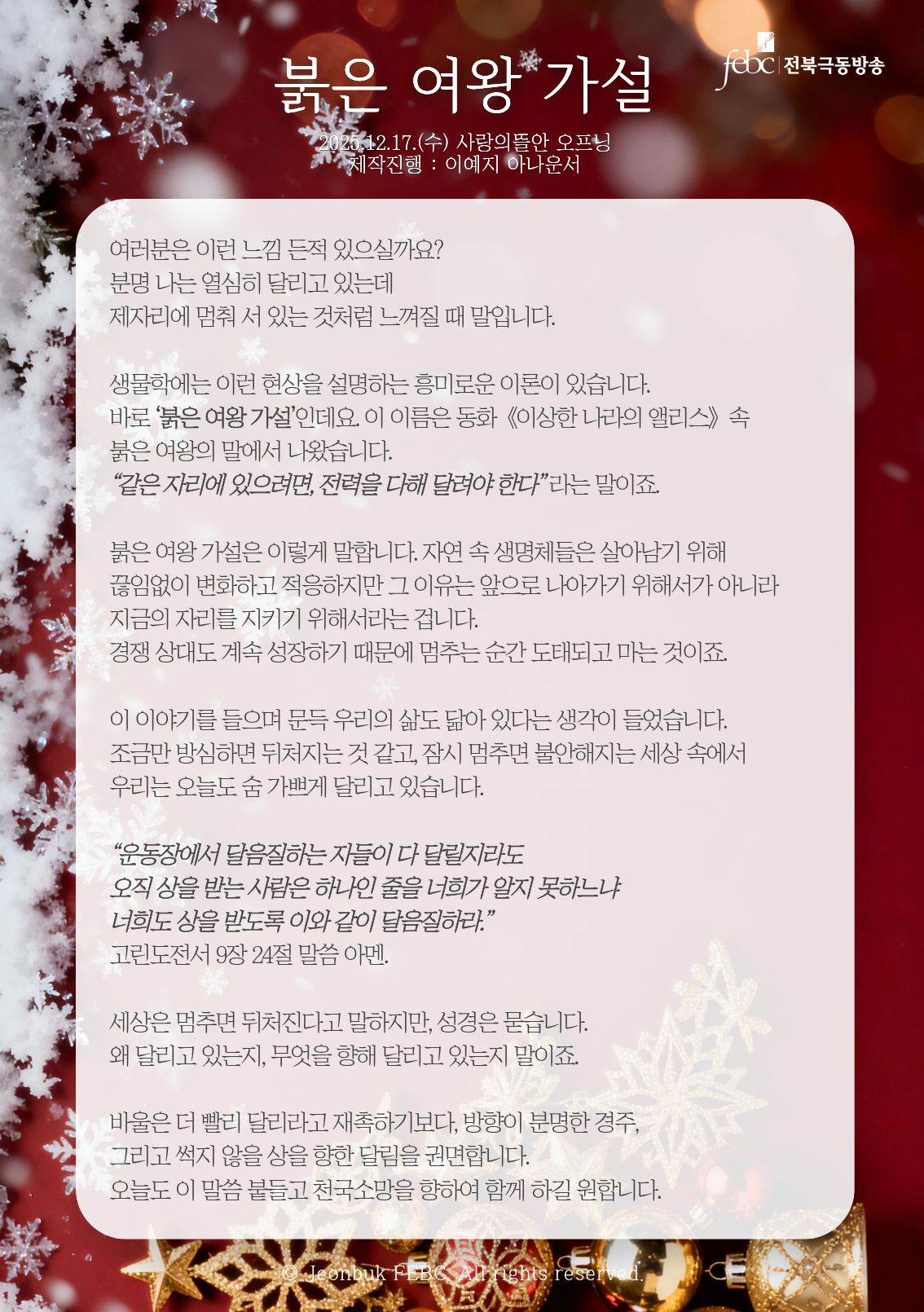 [전북] 25.12.17.(수) 사랑의뜰안 오프닝 "붉은 여왕 가설"