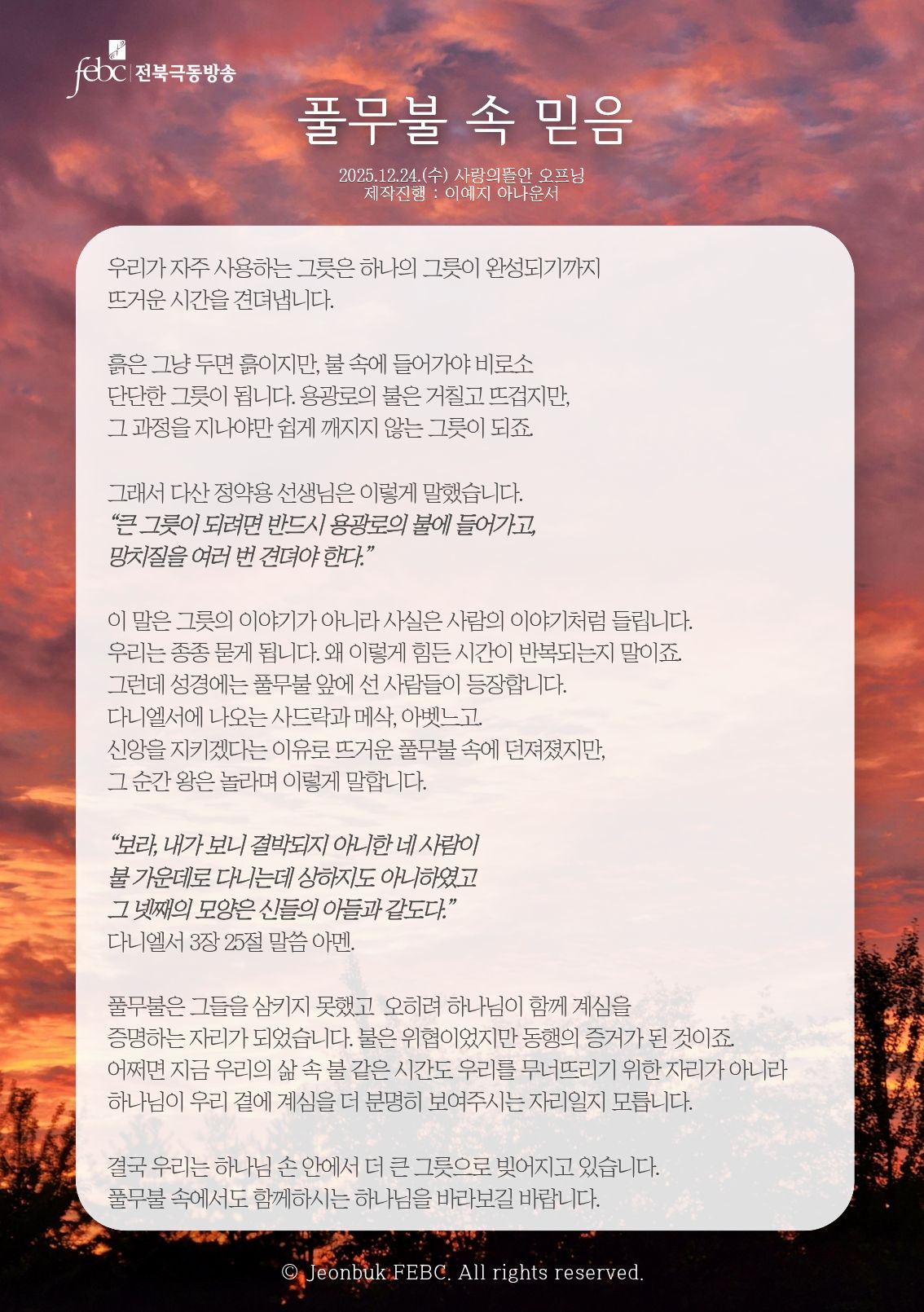[전북] 25.12.24.(수) 사랑의뜰안 오프닝 "풀무불 속 믿음"