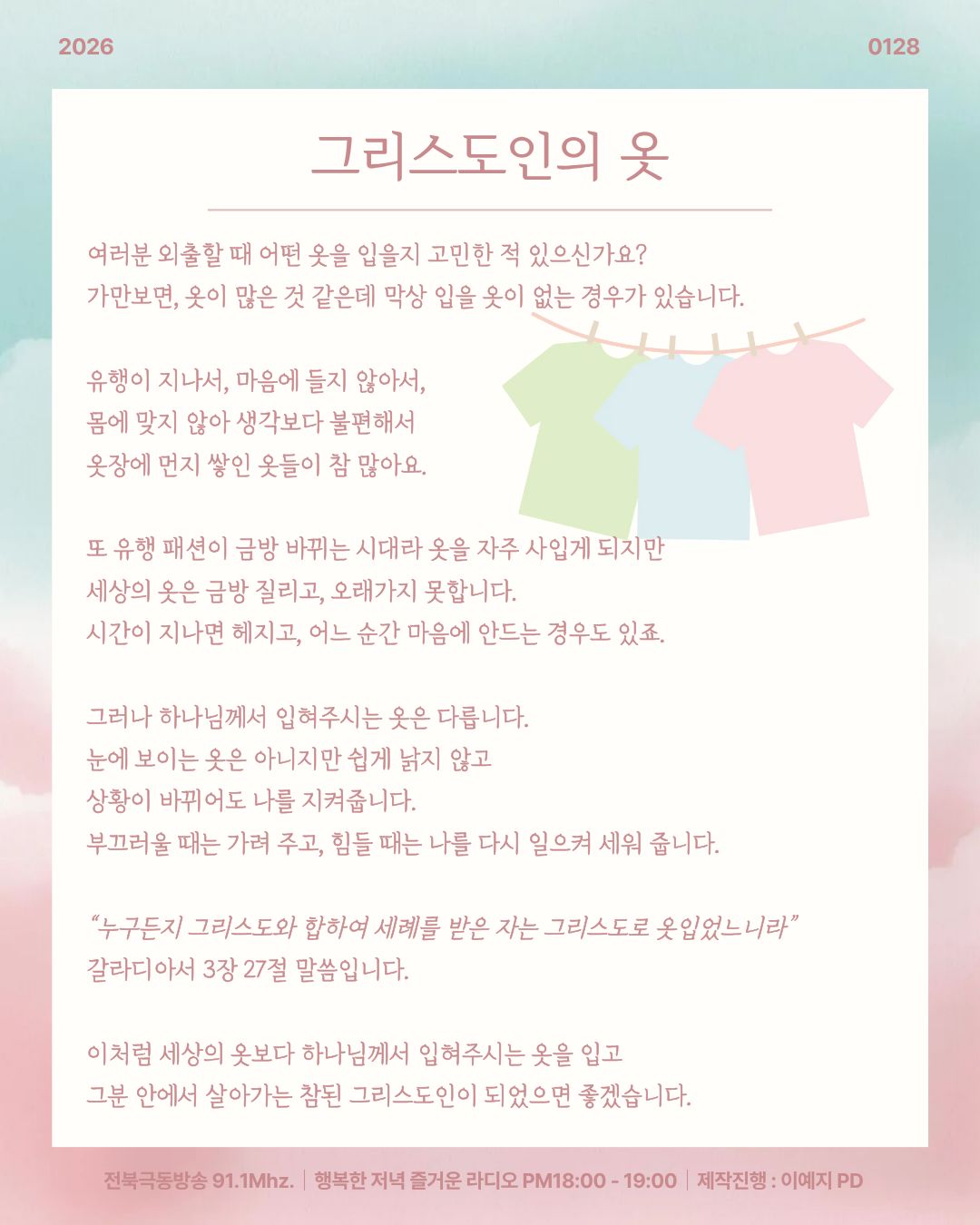 2026년 1월 28일 오프닝 [ 그리스도인의 옷 ]