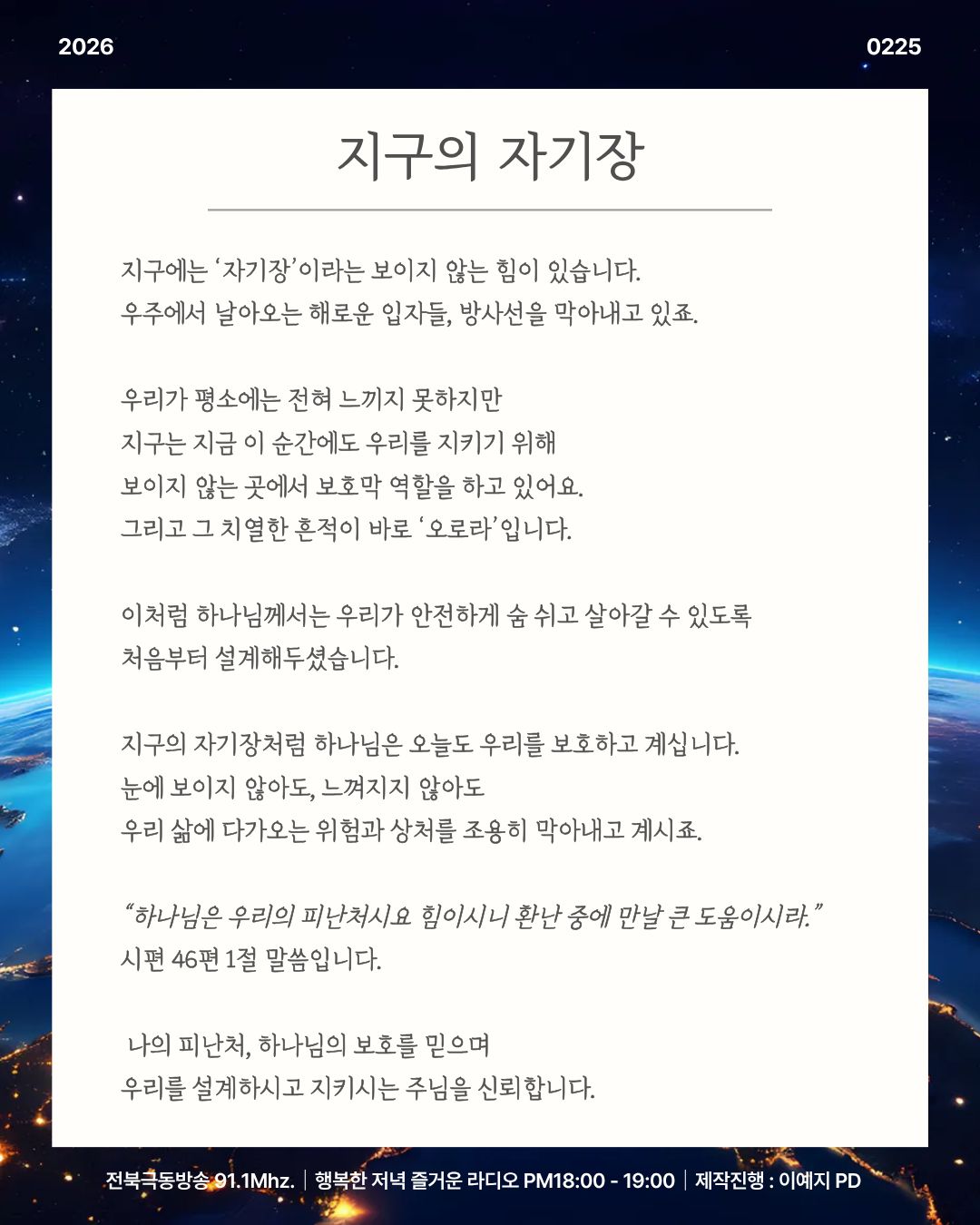 2026년 2월 25일(수) 행저즐라 오프닝 [ 지구의 자기장 ]