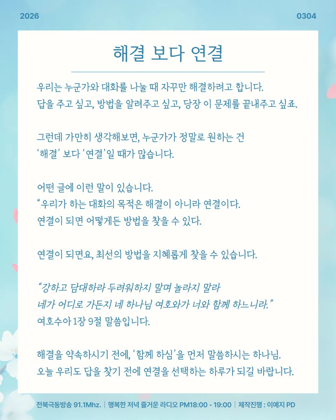 전북극동방송 행저즐라 오프닝 [ 해결 보다 연결 ]