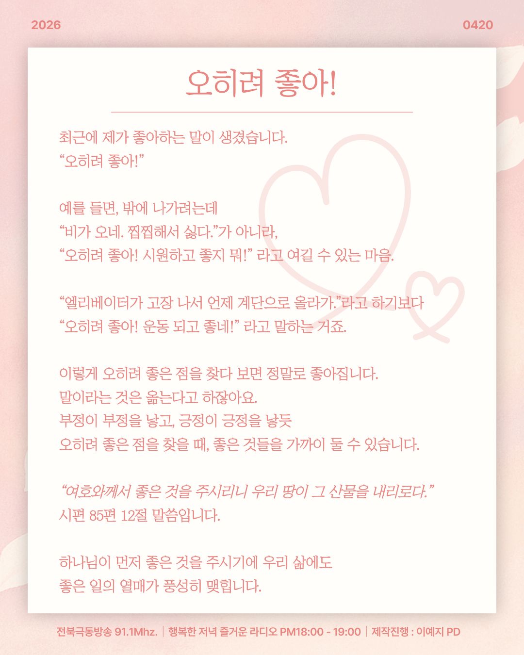 전북극동방송 행복한 저녁 즐거운 라디오!